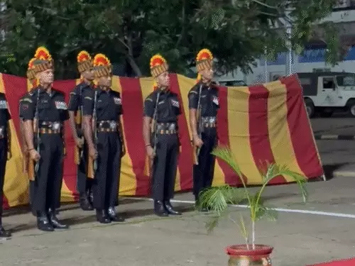 रायपुर एयरपोर्ट पर असम राइफल्स के जवानों ने शस्त्र सलामी दी।