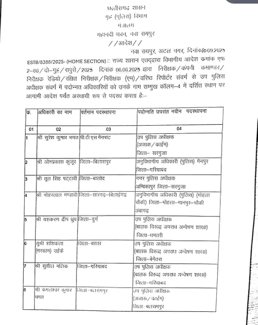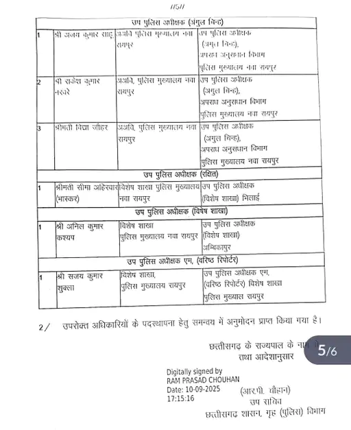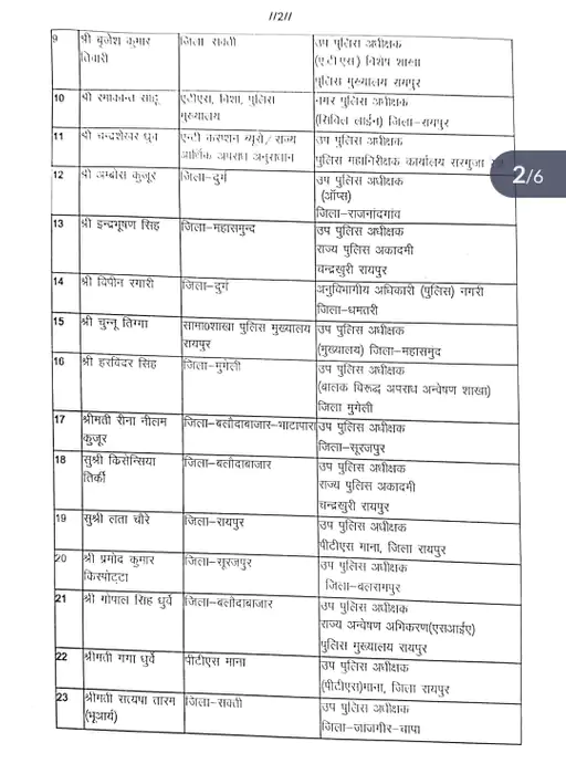 Chhattisgarh 58 DSP transfer-