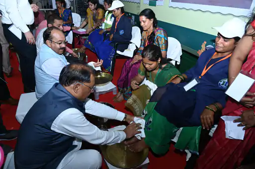 स्वच्छता दीदियों का पैर धोकर सम्मान