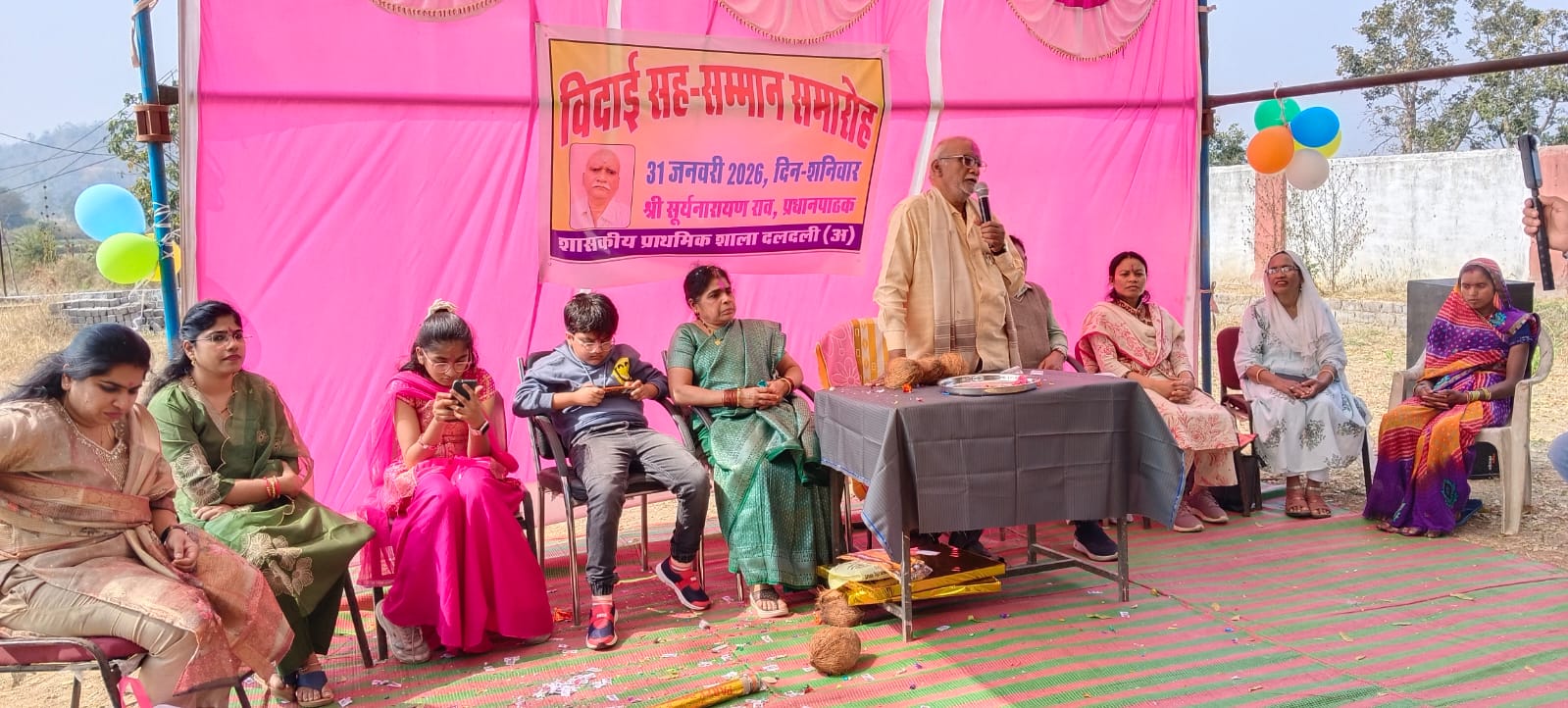 नगरी | शासकीय प्राथमिक शाला दलदली ‘अ’ में प्रधान पाठक सूर्य नारायण राव की सेवानिवृत्ति के अवसर पर विदाई सह सम्मान समारोह का भव्य आयोजन किया गया। इस अवसर पर ग्रामवासियों, शिक्षकों और विद्यार्थियों ने उन्हें भावपूर्ण एवं सम्मानजनक विदाई दी।