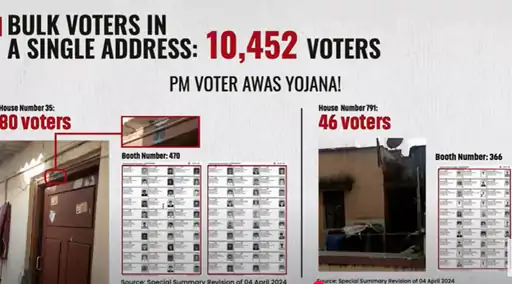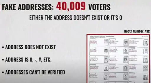 इन फर्जी वोटों में डुप्लीकेट एंट्री, फेक एड्रेस और एक ही पते पर दर्ज सैकड़ों वोटर शामिल हैं।