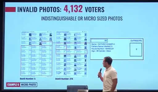राहुल गांधी ने एक स्क्रीन प्रजेंटेशन के जरिए महाराष्ट्र और कर्नाटक की वोटर लिस्ट का विश्लेषण प्रस्तुत किया। उन्होंने कहा: