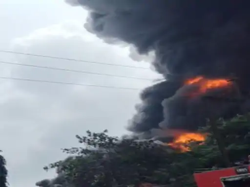 Raipur Oil Factory Fire: रायपुर के धरसींवा थाना क्षेत्र के सिलतरा औद्योगिक इलाके में गुरुवार सुबह भीषण आग लग गई। जेसी रिक्लेमेशन नाम की तेल फैक्ट्री के डंप-यार्ड में पड़े पुराने टायरों में आग भड़क उठी। टायरों से उठे काले धुएं का गुबार 3 किलोमीटर दूर तक दिखाई दिया।
